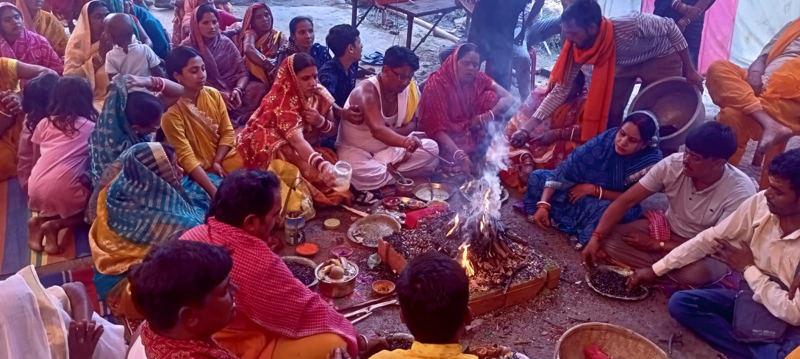 नावागढ़ | बाघमारा प्रतिनिधि : प्रखण्ड के फुलारीटाँड बस्ती में हो रहे चार दिवसीय हनुमान मंदिर प्राण प्रतिष्ठा का समापन हुआ । आसपास के क्षेत्र में अपार श्रद्धा ,भक्ति और हर्षोल्लास का माहौल रहा । ऐसे ऐतिहासिक धार्मिक महोत्सव सनातन परंपरा की जीवंत मिसाल बना है । इस अवसर पर प्रथम दिन नगर भ्रमण और भव्य कलश यात्रा कार्यक्रम का आयोजन हुआ । जिसमें 351 महिलाओं सहित कन्याओं ने कलश यात्रा में भाग लिया ।